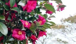 冬を彩るサザンカが見ごろ 野外彫刻と一緒に鑑賞をお勧め 尾道市「圓鍔記念公園」