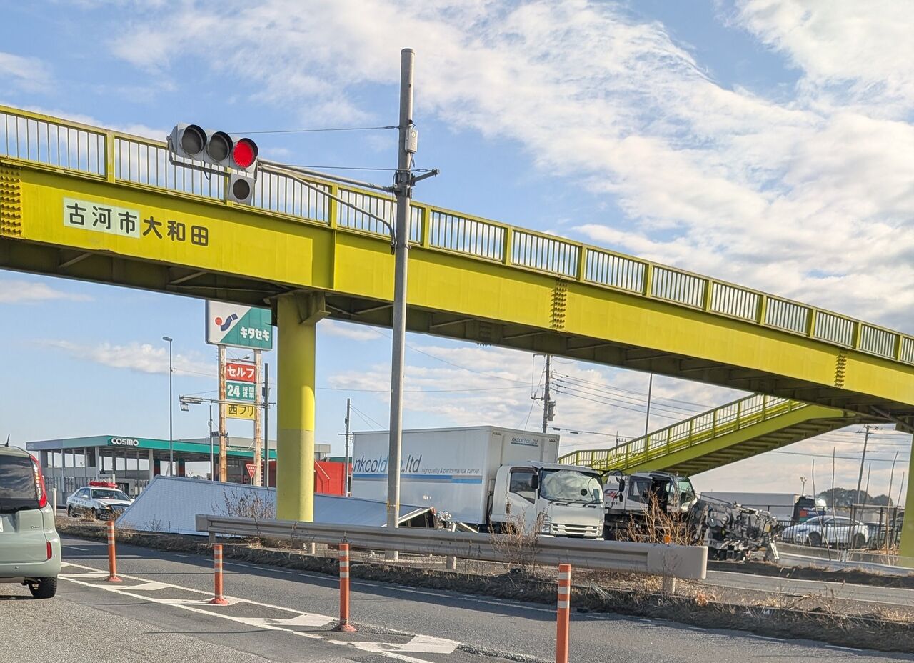 【現場の状況】#交通情報 新4号国道 上り 茨城県古河市大和田歩道橋付近 大型トラック部品落下事故で一部交通規制渋滞2月12日 #茨城 #古河