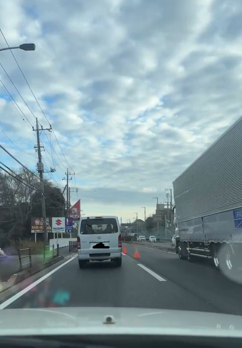 国道6号線下り、取手の駅を超えたあたりで、トラックが中央分離帯に乗り上げてる…
