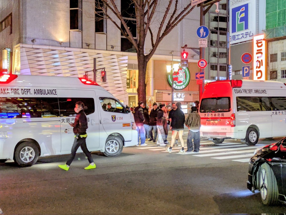 【目撃証言】#注意喚起『複数の人が刺された通報』大阪府大阪市中央区道頓堀1丁目付近に多数の消防警察救急隊が出動し封鎖 複数の怪我人情報2月15日 #大阪 #道頓堀 #ミナミ