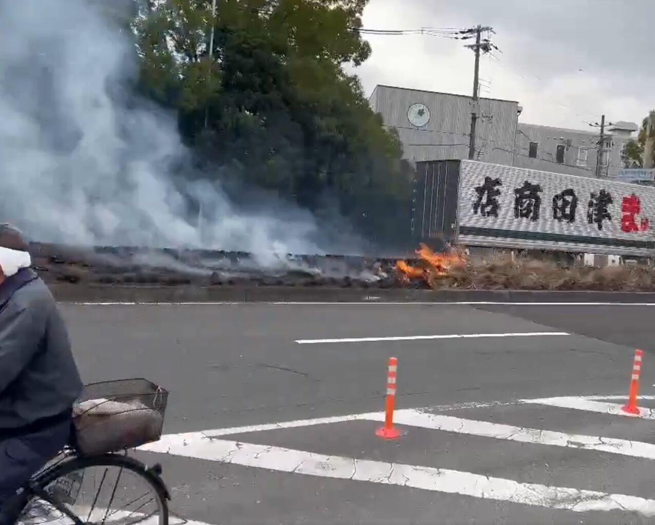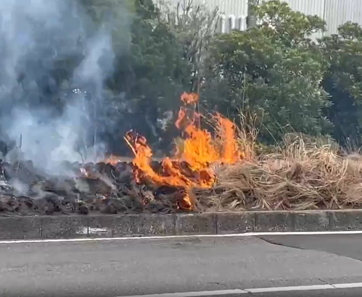 【火事情報】#交通情報 大阪高槻京都線 大阪府茨木市宮島1丁目付近 中央分離帯燃える枯草火災2月16日 #大阪 #茨木 #火災