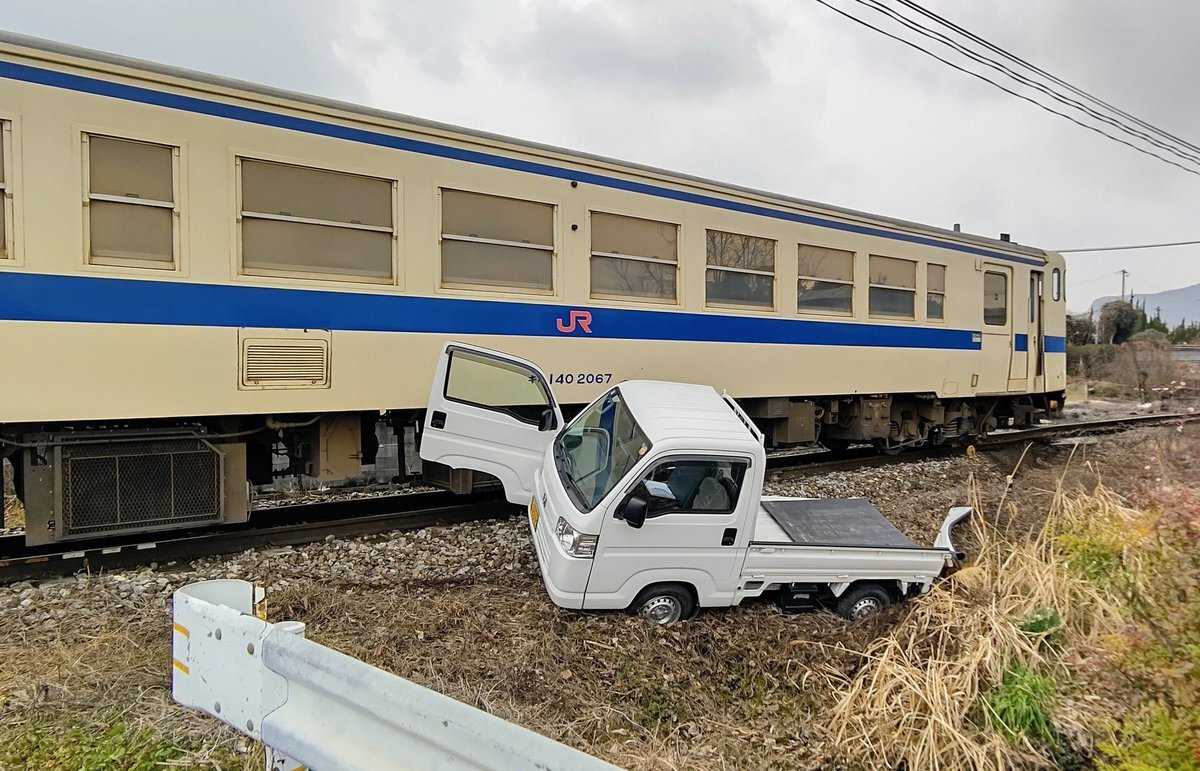 【現場の状況】『回送列車と軽トラの衝突事故』#後藤寺線 船尾駅~田川後藤寺駅付近 踏切事故で一時運転見合わせ遅延2月16日 #福岡 #田川市 #JR九州