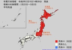 “10年に1度レベル”平年に比べ「気温がかなり高くなる」可能性 関東甲信・北海道、東北地方で2月22日頃から 気象庁が「高温に関する早期天候情報」発表