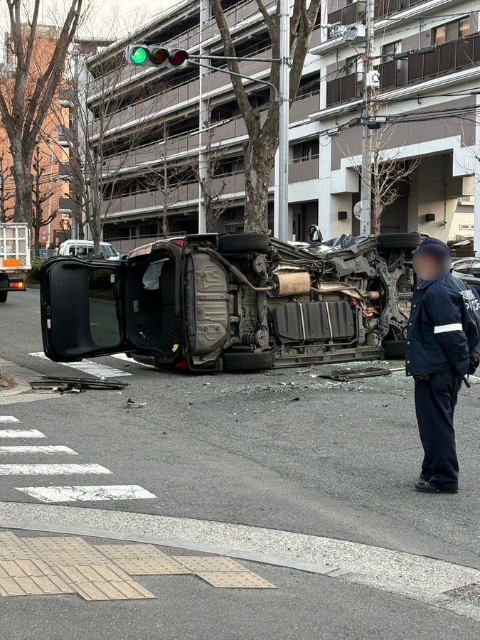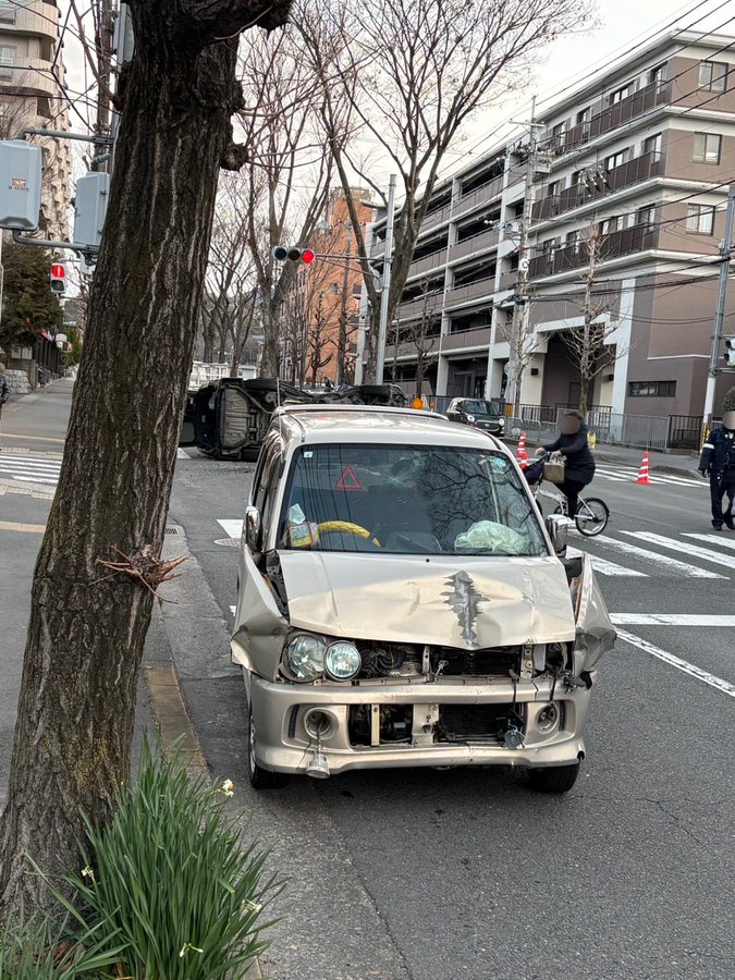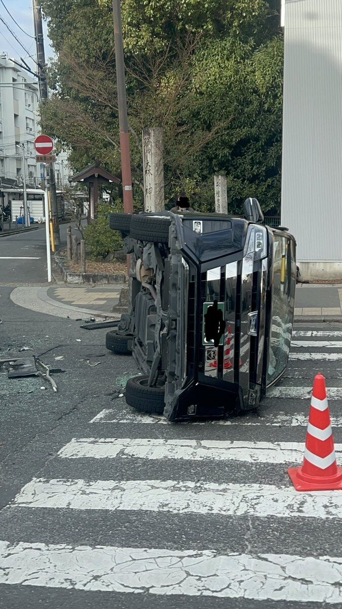 【現場の状況】#交通情報 白川通 京都府京都市左京区山端壱町田町付近交差点 タクシーと乗用車の衝突横転事故で規制渋滞2月17日 #京都 #修学院