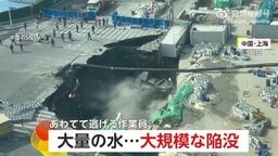 工事現場で道路が大規模陥没…慌てて逃げる作業員 資材や小屋が次々とのみ込まれる 中国・上海