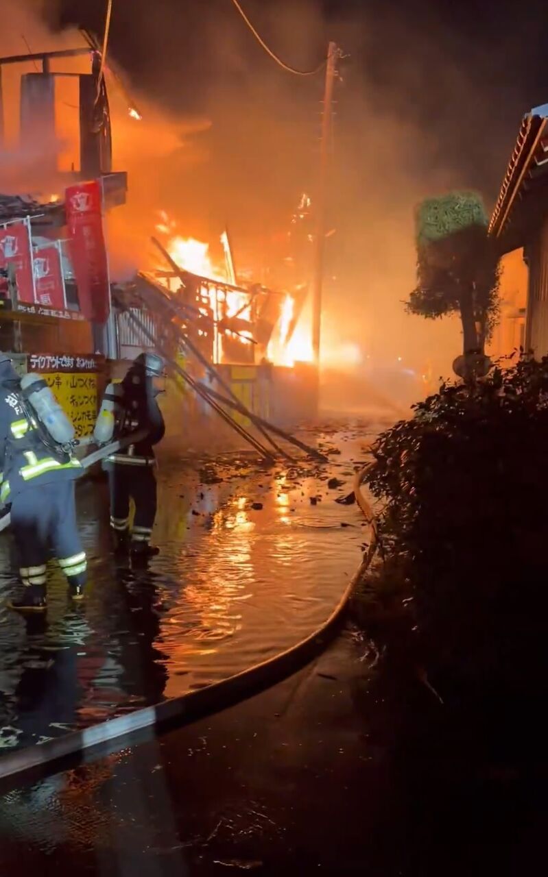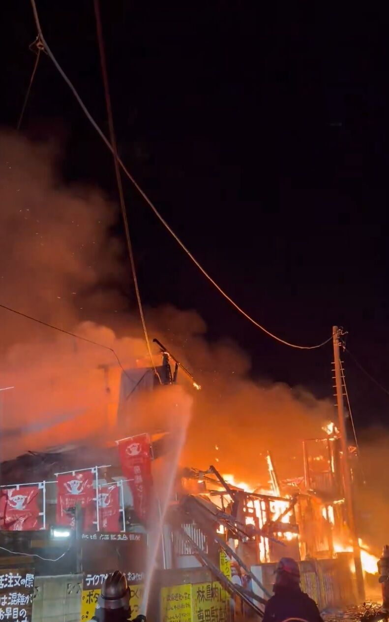 サイレンで起こされた挙句停電までして何事やと思ったら家の近くの精肉屋燃えてるやんけ! pic.twitter.com/0Ycjz3W8Pc