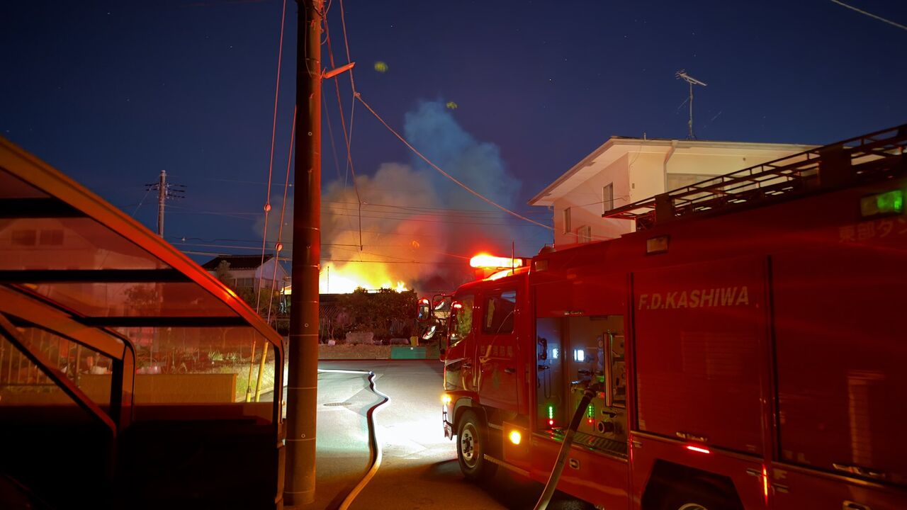 ◇03:49ごろ柏市大島田(オオシマタ)で建物火災 が発生し消防隊が活動中です