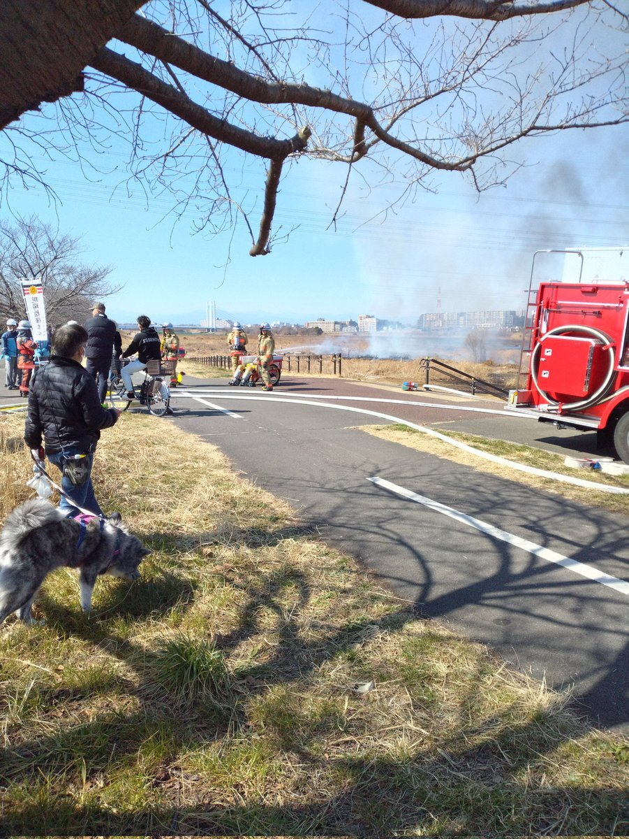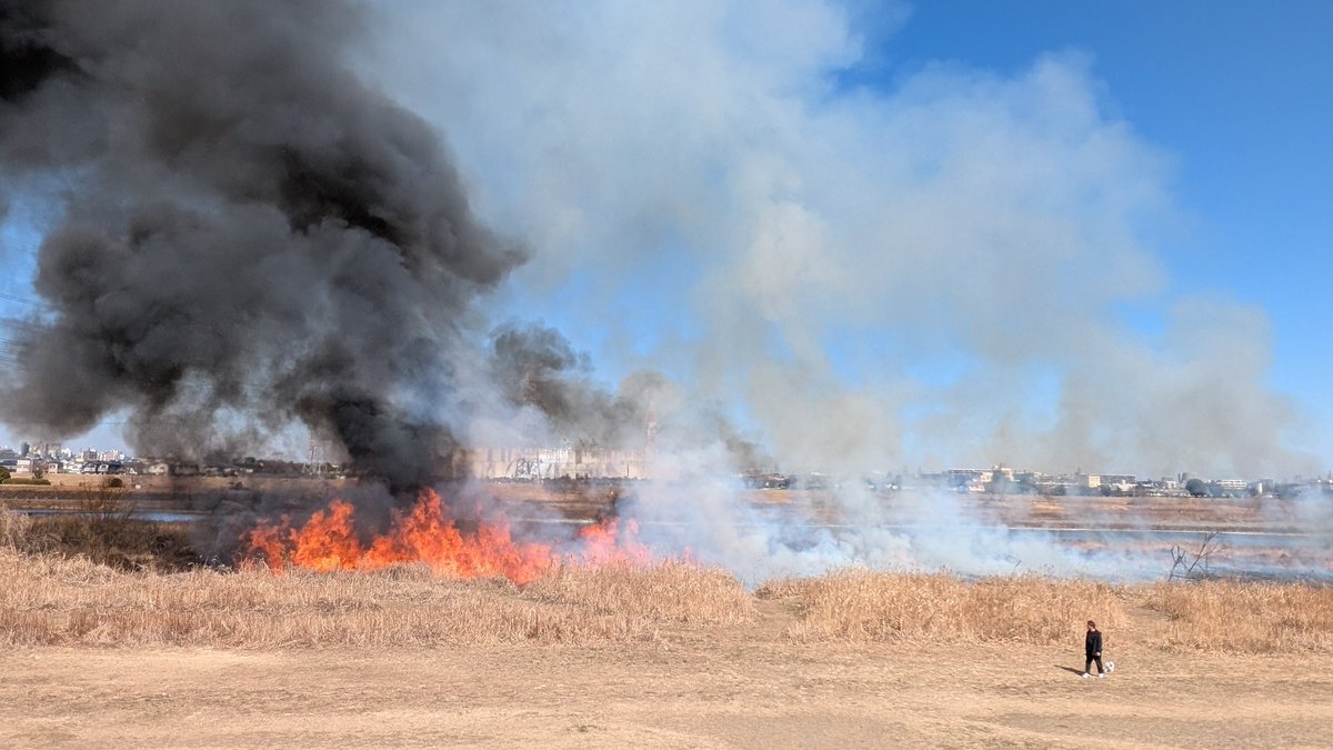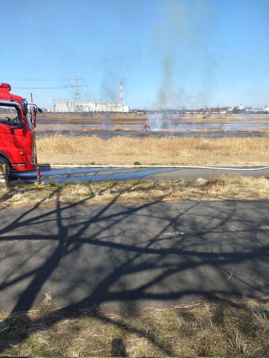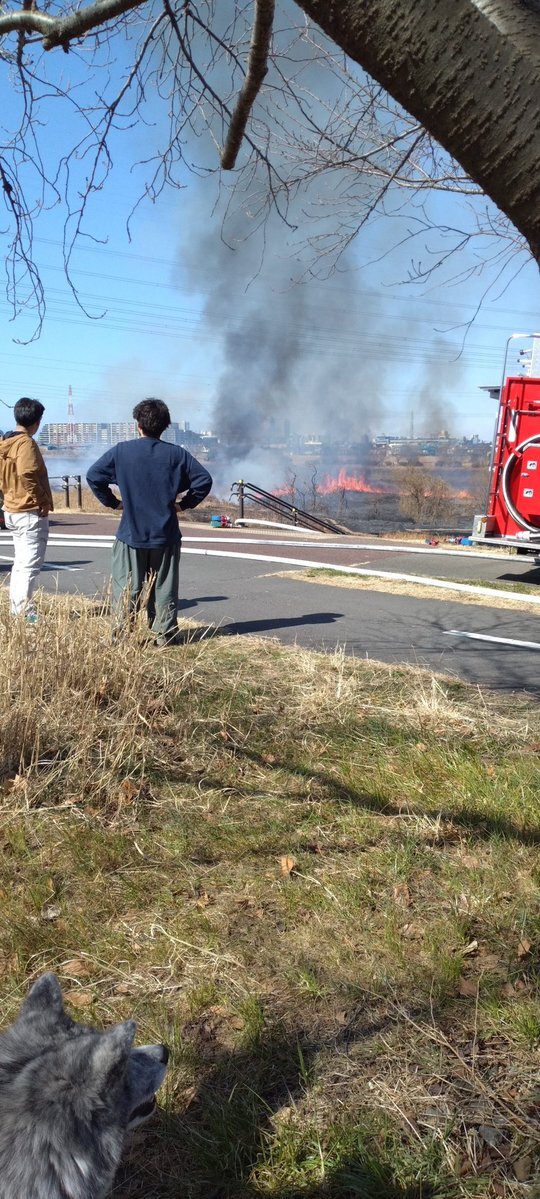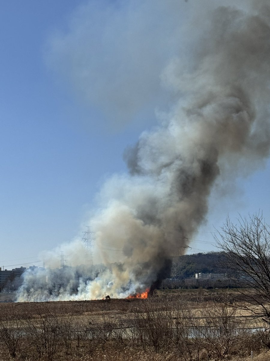 『稲城走ってたらジジイが始めた野焼きが広がって消防呼んだりてんやわんや 火は上まで来てないけど駐車場にいても熱い』