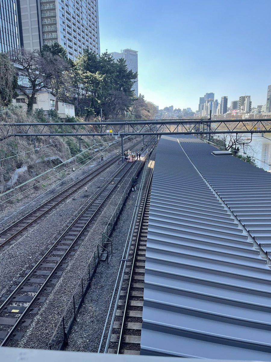 【現場の状況】『飯田橋駅線路に消防来てる』#中央線 四ツ谷〜御茶ノ水駅間で線路内発煙 #中央本線 #青梅線 #総武線 など遅延2月21日 #飯田橋 #火災 #3連休