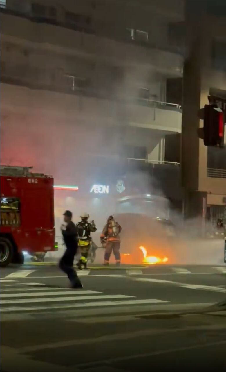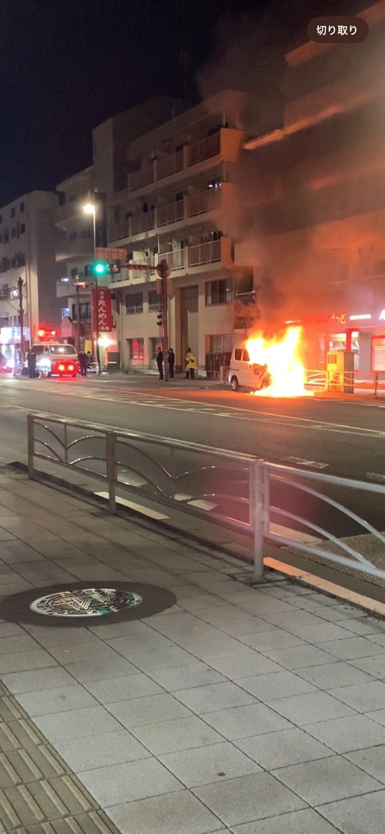 『国道16号走ってたらすごい爆発音がして、踊ろいて振り返ったら車燃えてた。保土ヶ谷警察署の目の前』