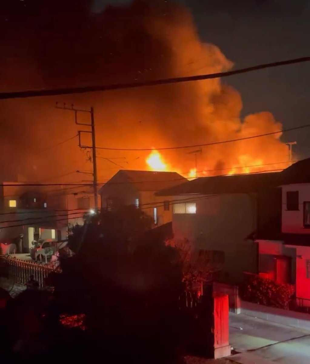 近所で火災。消防車が家の目の前に止まってて、エンジン音で眠れない。4件が燃えたらしい。今も燻りがあるので鎮火に至ってない模様。一番怖いのは火の粉だな。風向きが向こうだから#火災#相模原#眠れない