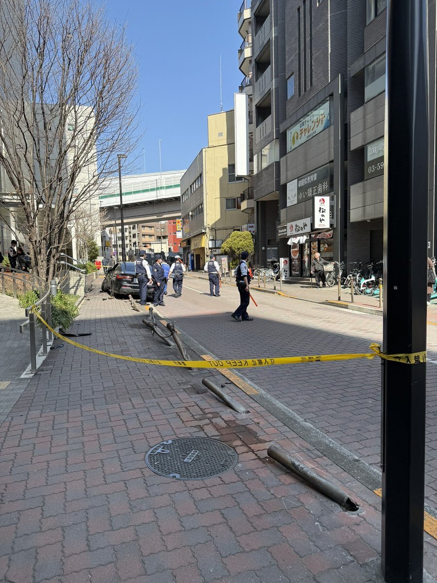 【現場の状況】#交通情報 東京都板橋区板橋2丁目 板橋区役所付近 黒塗りの高級外車が歩道突っ込む事故 周辺道路一時規制封鎖2月23日 #板橋 #板橋区役所 #3連休
