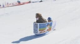 霧ヶ峰スキー場で「ソリ人間コンテスト」 オリジナルのソリの独創性や滑走中のパフォーマンスなど競う 長野・諏訪市