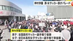 神村学園・男女サッカー部が凱旋パレード 鹿児島・いちき串木野市