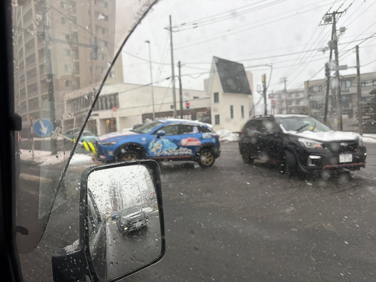 南郷通りの中央分離帯に突っ込んで乗り上がってる痛車がおる