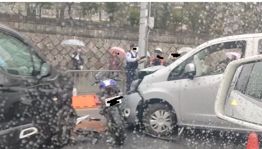 『茨木市、太田のドン・キホーテ手前3台絡む大きめの事故ですー