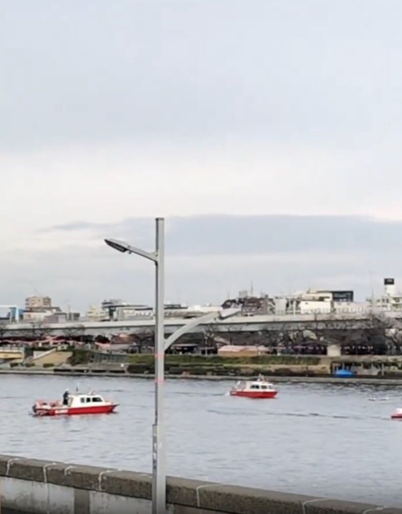 『隅田川、なにやら異様な雰囲気だれか溺れたのか…必死で捜索中』