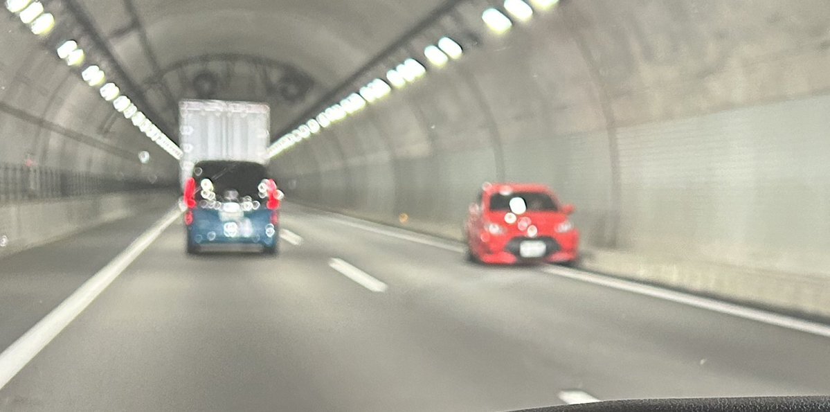 『新東名千両トンネルの手前のトンネルで玉突き事故。追越車線で二台が発煙筒焚いて止まっていて、俺がパスした直後にもう一台突っ込んだ』