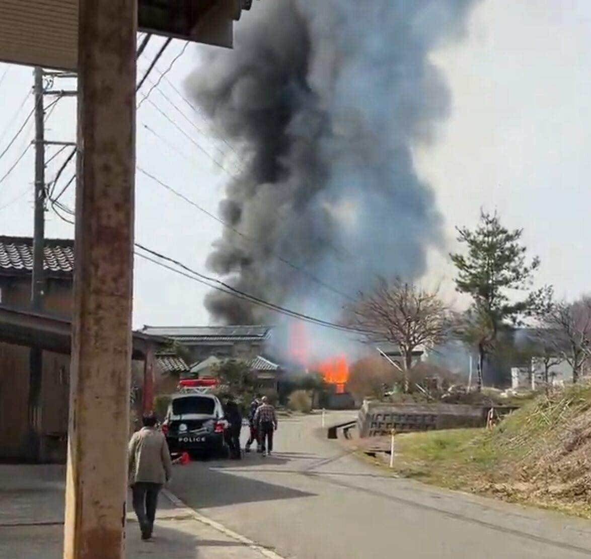 【火事情報】 新潟県南蒲原郡田上町川船河 新潟経営大学北側付近 建物から炎と激しい黒煙あがる火災3月22日 #新潟 #田上町 #加茂 #火災