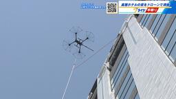 高層ホテルの窓をドローンで清掃 広島駅近くで実証実験 高所作業のリスク減らし、清掃コストの削減めざす