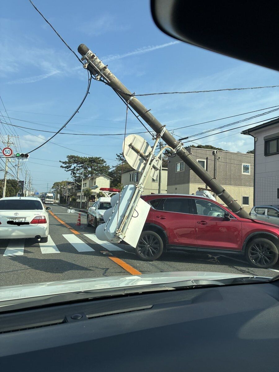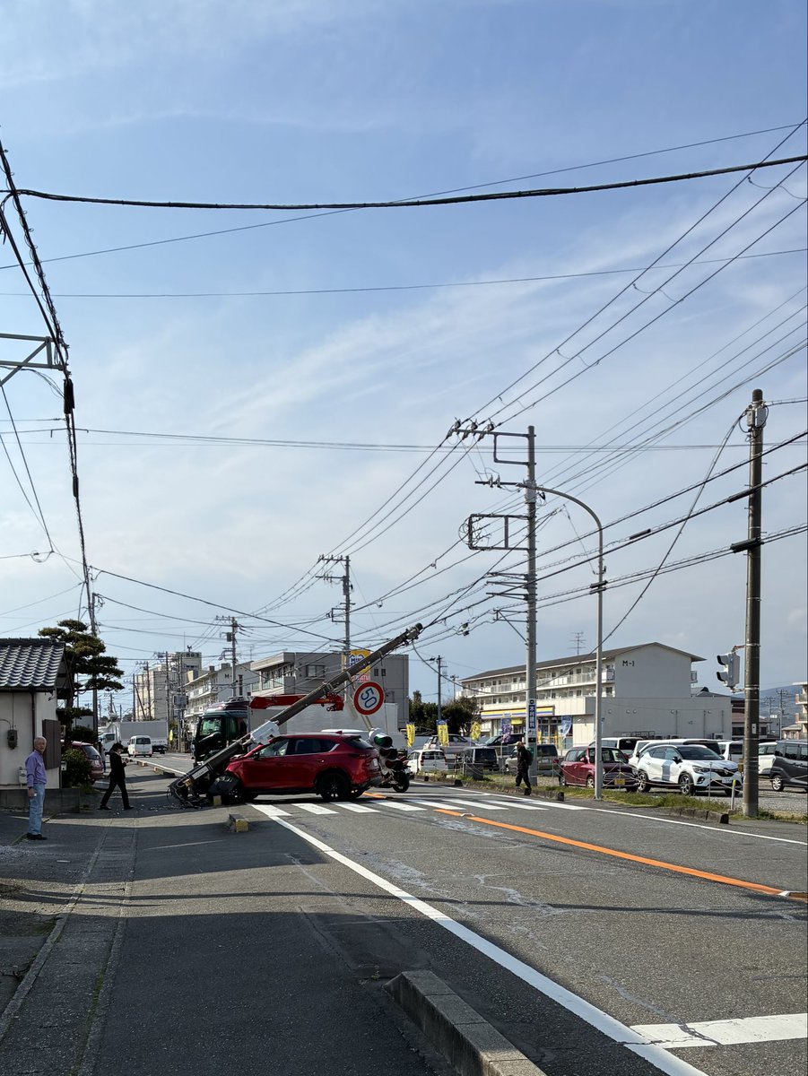 電柱がへし折れてるのが見えた。#沼津市#千本街道 #富士清水線380号線— 茶々丸 (@dekazo2012) March 24, 2026