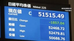 連休明けの日経平均株価一時2600円超下落…終値で5万2000円を割るのは約2カ月半ぶり 原油価格は一段と上昇