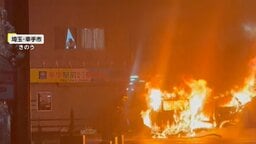 「ガチでやばいじゃん」ワゴン車が大炎上 燃えさかる車の運転手もペットボトルで消火するも収まらず 埼玉・幸手市