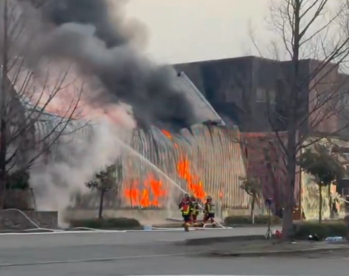 【火事情報】新潟県西蒲原郡弥彦村大戸 プラスチック製品製造「JEJアステージ」の弥彦工場から炎と激しい黒煙あがる工場火災3月29日 #新潟 #弥彦村 #火災