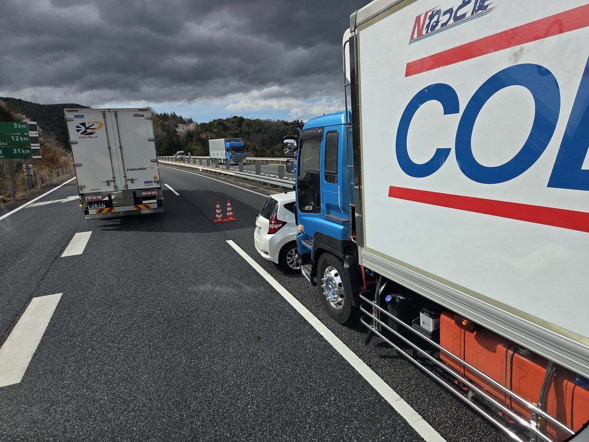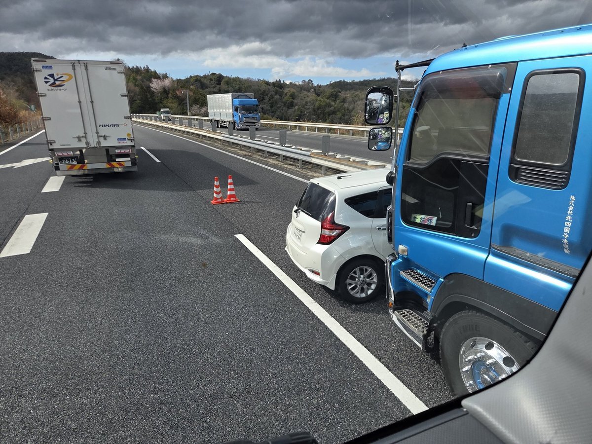 【現場の状況】#交通情報 山陽道 下り 尾道IC~八幡PA付近 トラックと乗用車の衝突事故で規制渋滞3月31日 #山陽道 #広島 #尾道