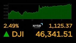 ニューヨーク株1100ドル超高の大幅続伸 トランプ大統領“軍事作戦終える用意”発言で期待 ダウ4万6341ドル51セント