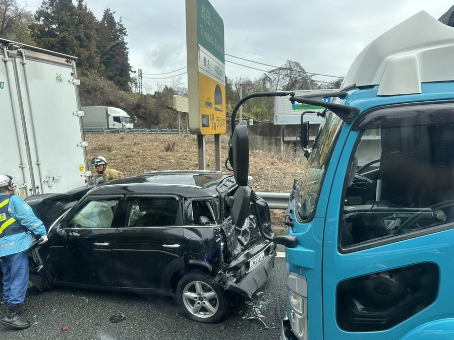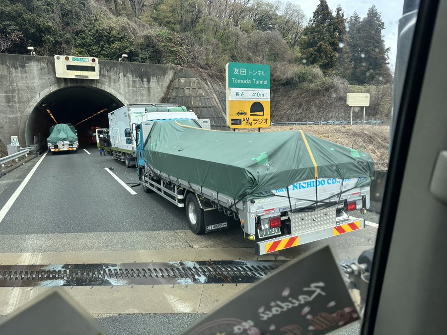 『圏央道外回り菅生トンネル出口4台玉突き』