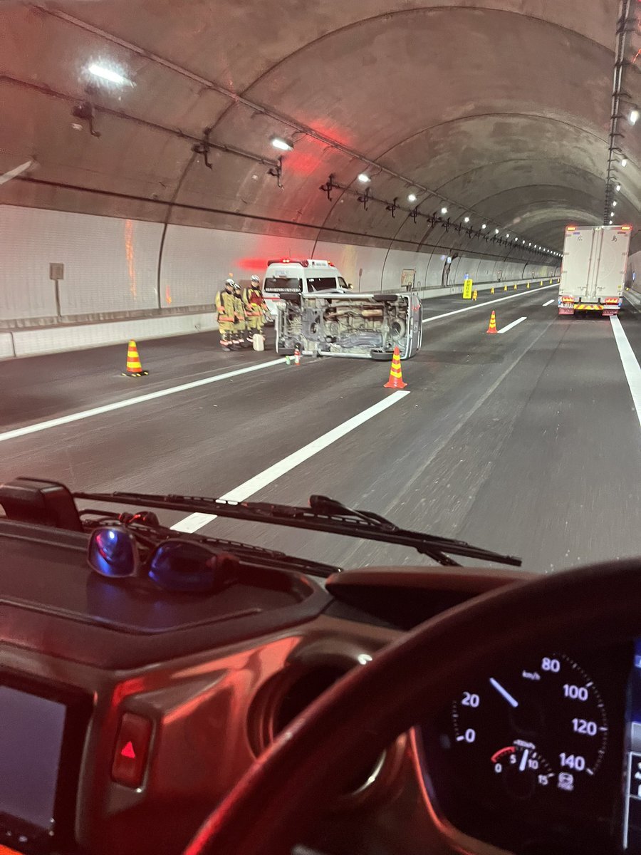 『新名神、信楽〜甲南間のトンネル内で事故。。。ちょい渋滞してます。』