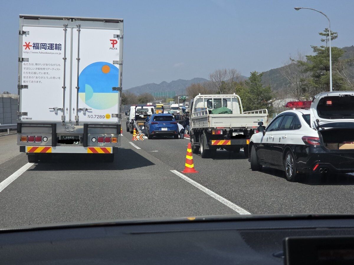 名神上りで乗用車3台の玉突き春休みですねぇ😇』▽現場の情報など