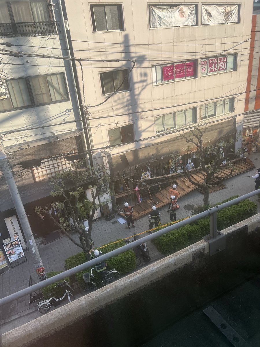 【目撃情報】大阪府大阪市福島区福島5丁目 #大阪環状線 福島駅近く 立ち飲み店の看板落下事故 歩行者注意4月3日 #大阪 #福島