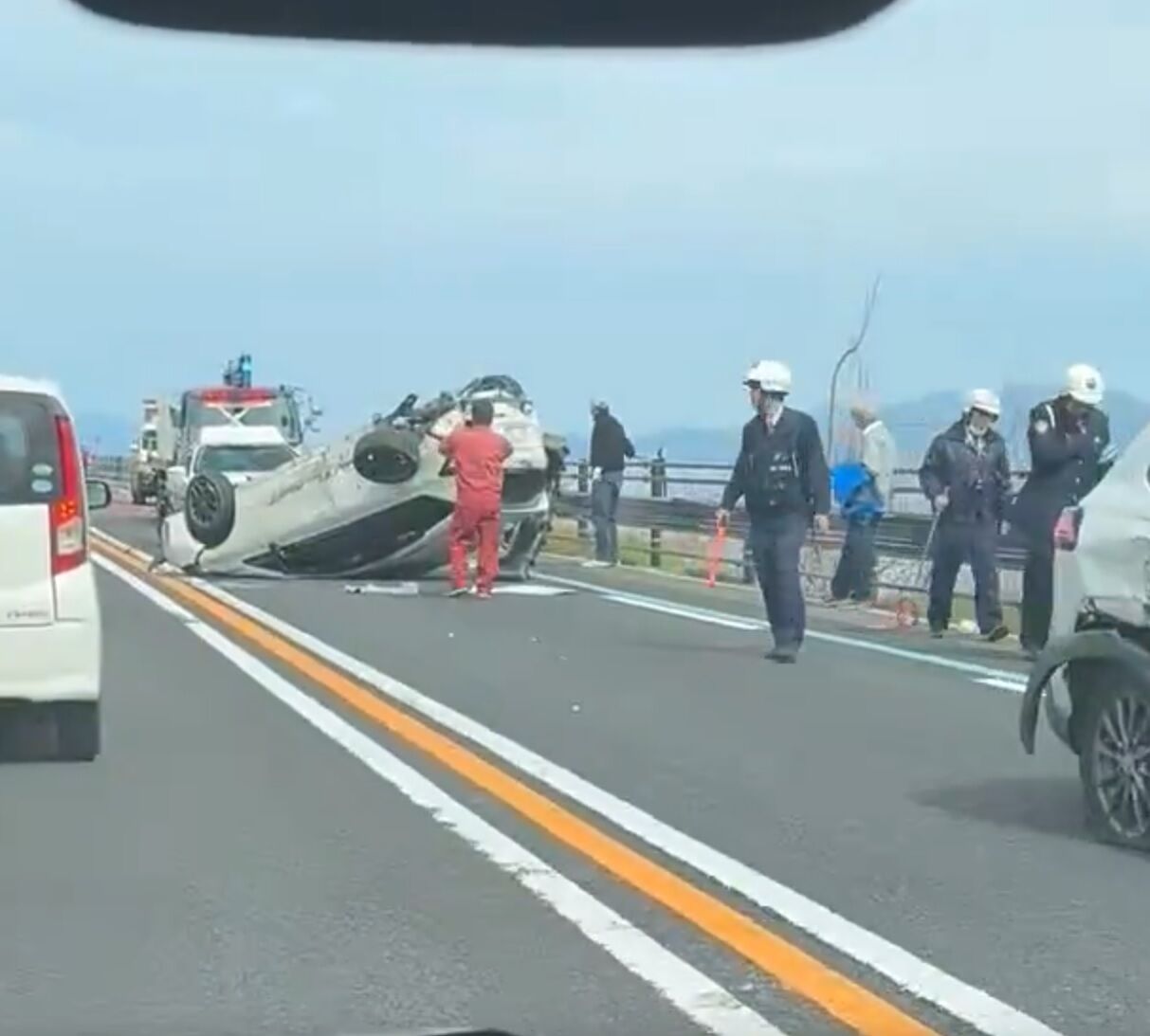 『161北小松から白髭えらい渋滞してると思ったらノートがひっくり返ってるわ』