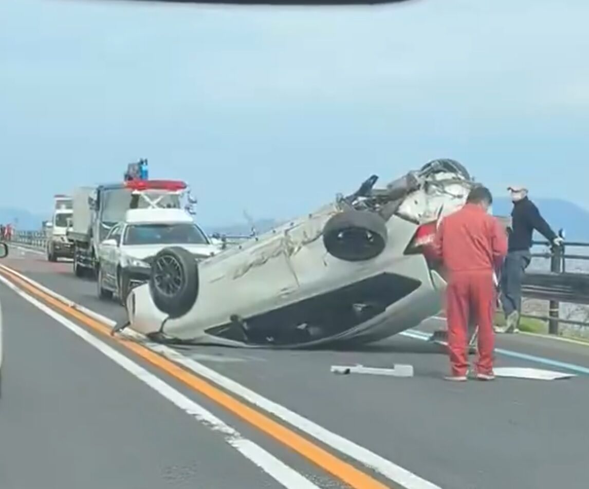 【現場の状況】#交通情報 国道161号線 滋賀県高島市鵜川 白髭神社付近 車両3台衝突横転転覆事故で規制渋滞4月5日 #滋賀 #琵琶湖