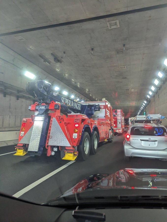 青葉ジャンクションの先のトンネルのこのクソみたいな事故のせいで仕事間に合わねーし無駄に飛ばすなよ迷惑だわ