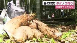 タケノコ狩りシーズン到来・観光農園も行楽客でにぎわう 竹林のあちこちに顔をのぞかせ