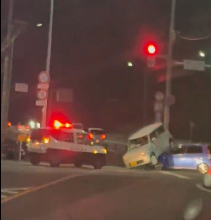 『福岡県遠賀町のグランロッキー前の事故。大変なことになってる』