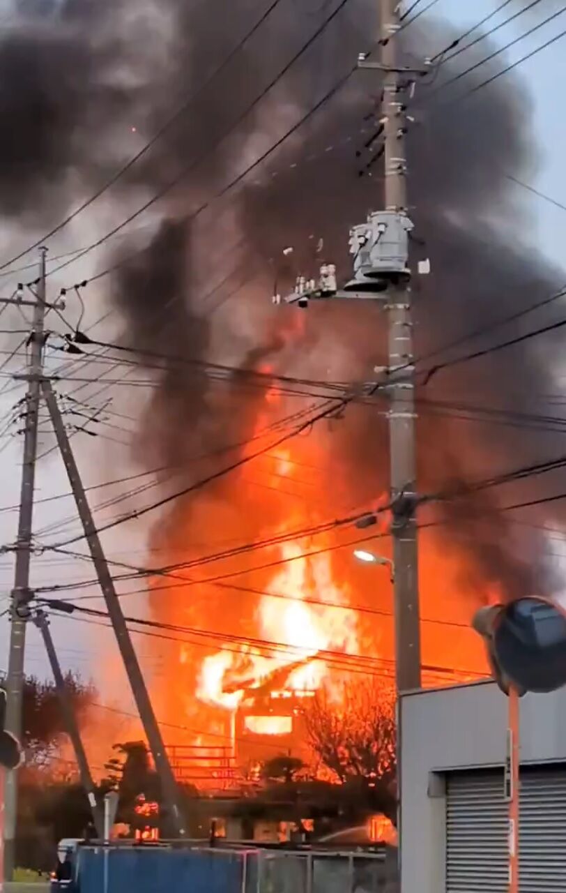 【火事情報】埼玉県新座市片山2丁目付近 建物から炎と煙あがる火災 前原橋通りなど周辺道路一部交通規制4月8日 #埼玉 #新座 #火災