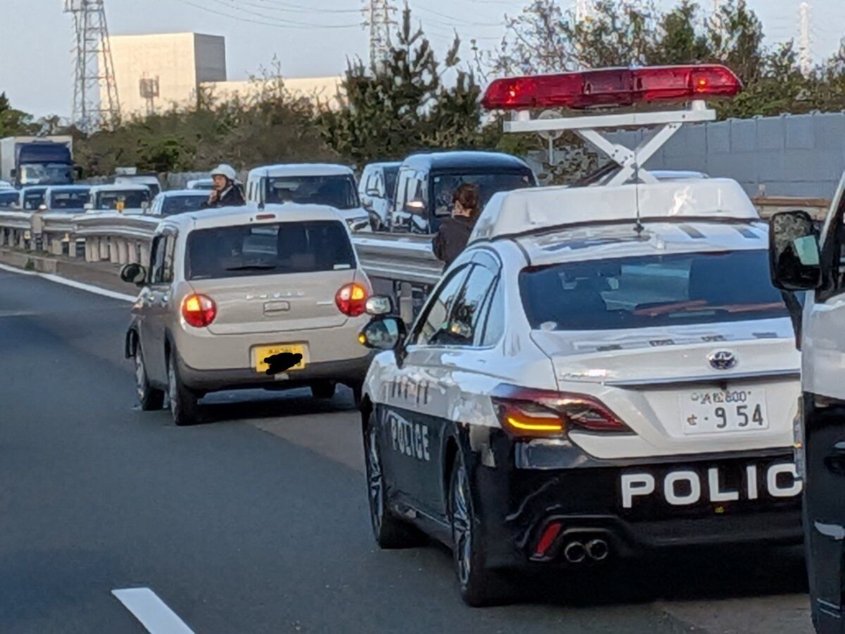 【現場の様子】#交通情報 国道1号線 磐田バイパス 下り 静岡県磐田市加茂IC付近 車両4台からむ事故で規制渋滞4月8日 #静岡 #磐田 #浜松