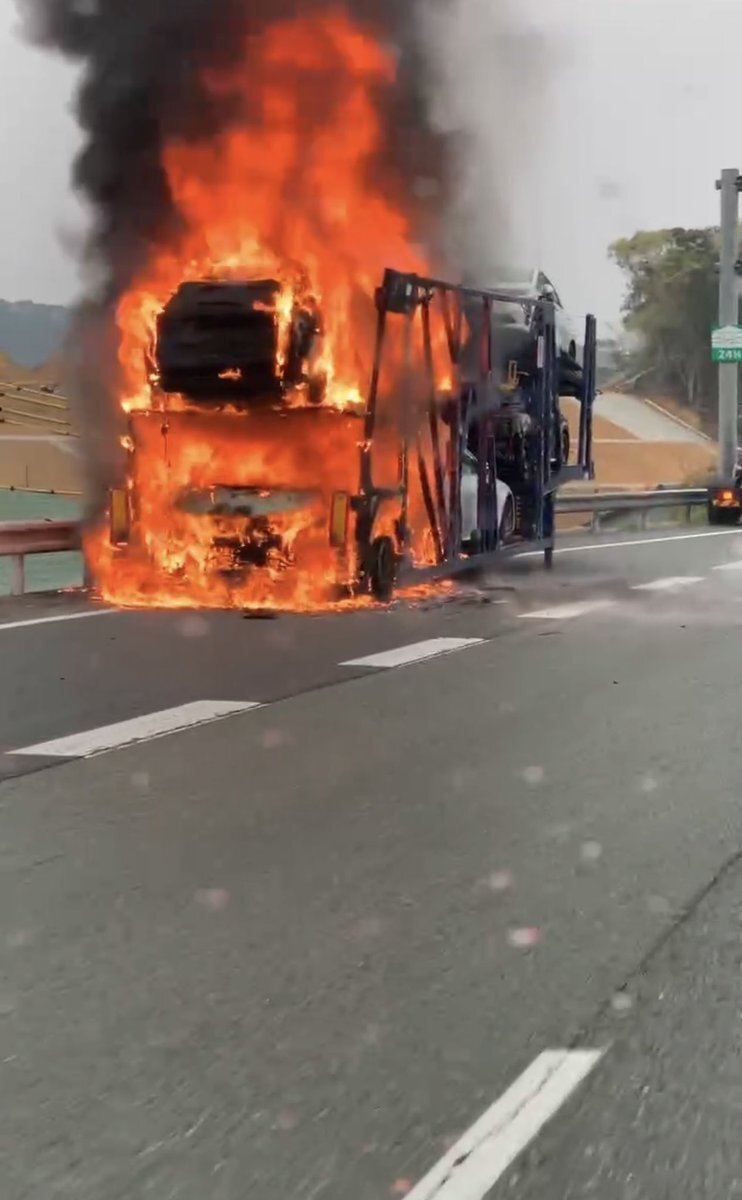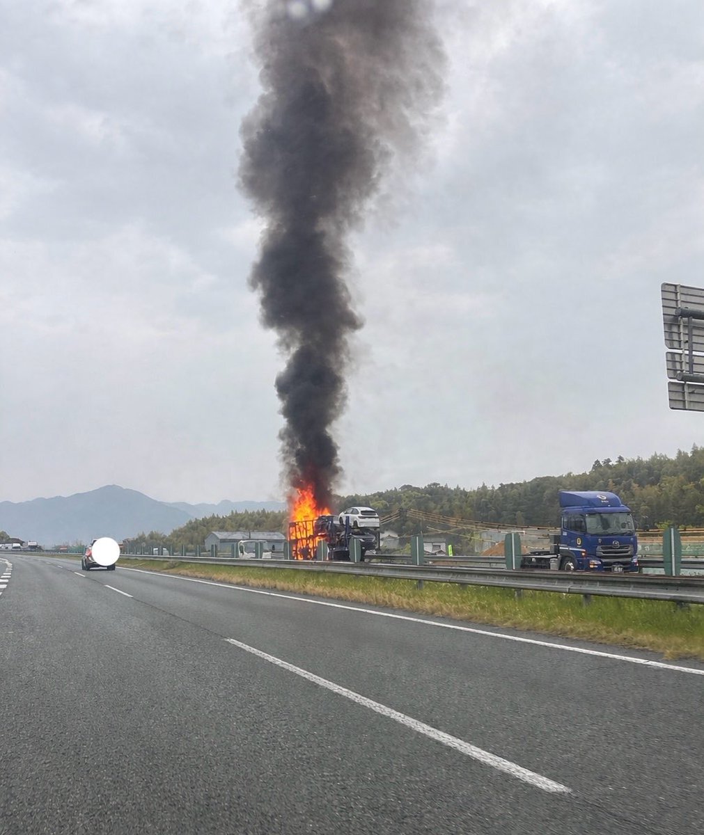 上りの直方PAのとこあたりでキャリアカー燃えてました