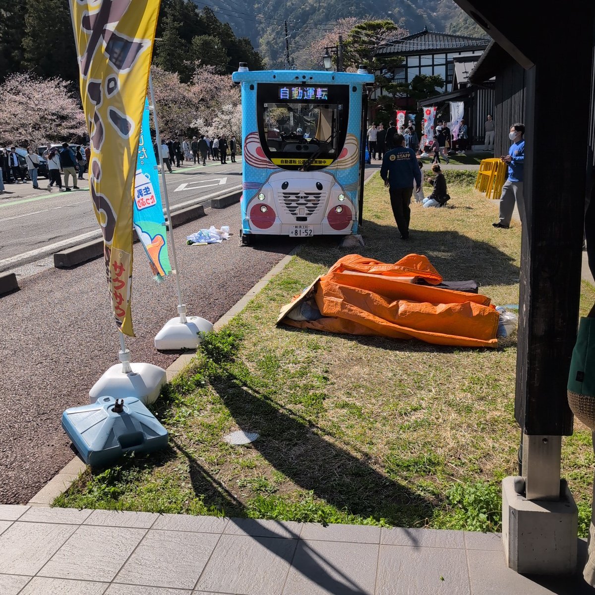 【現場の目撃情報】#交通情報 県道29号 新潟県西蒲原郡弥彦村おもてなし広場前付近 自動運転バス「ミコぴょん号」が事故 怪我人いる情報も4月12日 #新潟 #弥彦村 #バス