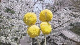 名物「あげまん」と散り始めの桜 残雪の北信五岳も 長野県中野市・東山公園